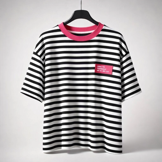 Dit veelzijdige T-shirt in zwart, wit en roze verleden bij elke gelegenheid dankzij de tijdloze ronde hals en de one-size-fits-all maat. Leuk embleem met de tekst 'kleed jezelf en niemand anders' Gemaakt van hoogwaardig materiaal voor een comfortabele pasvorm en duurzaamheid. Met dit kleurrijke shirt val je op en voeg je een speelse touch toe aan je outfit. | Hoogwaardige materialen | Tijdloze ronde hals | Geschikt voor elke gelegenheid.