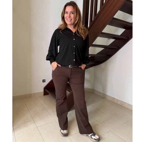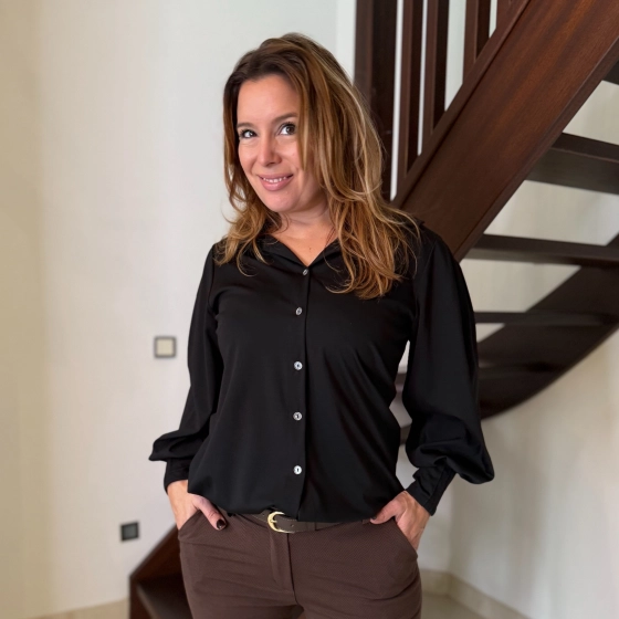 Zwarte blouse met unieke mouwen – stijlvol en veelzijdig