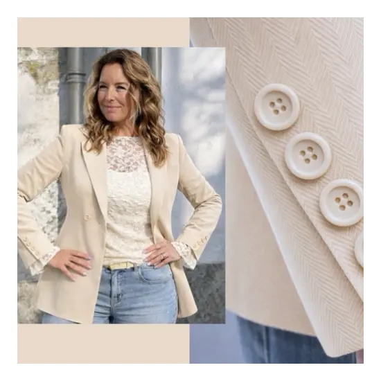 Shop the look met beige blazer, ivoor kanten top en ivoor basic topje – dé perfecte voorjaarsset voor een frisse, vrouwelijke uitstraling. Draag deze elegante combinatie casual op een jeans of stijlvol op een pantalon. Extra leuk te combineren met de ecru riem Lucille, los bij te bestellen voor €19,95 voor een complete, trendy look.