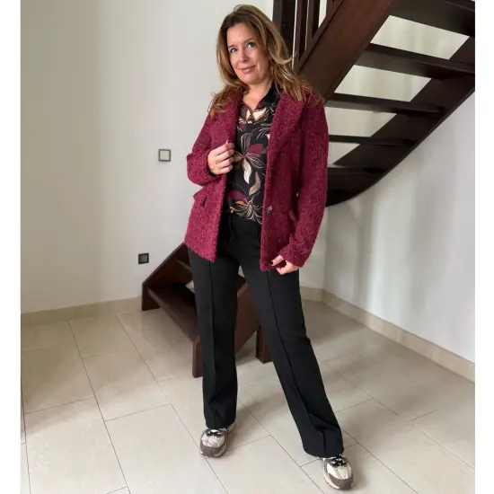 Een opvallende blazer die warmte en stijl toevoegt — perfect voor het seizoen.