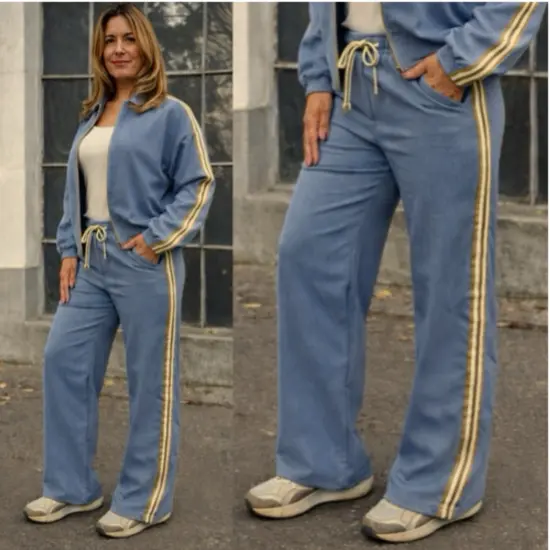 Model op d efoto is 1.67 en heeft maat 38, zij draagt de broek in maat S-M, jasje in maat S-M en het topje one size.